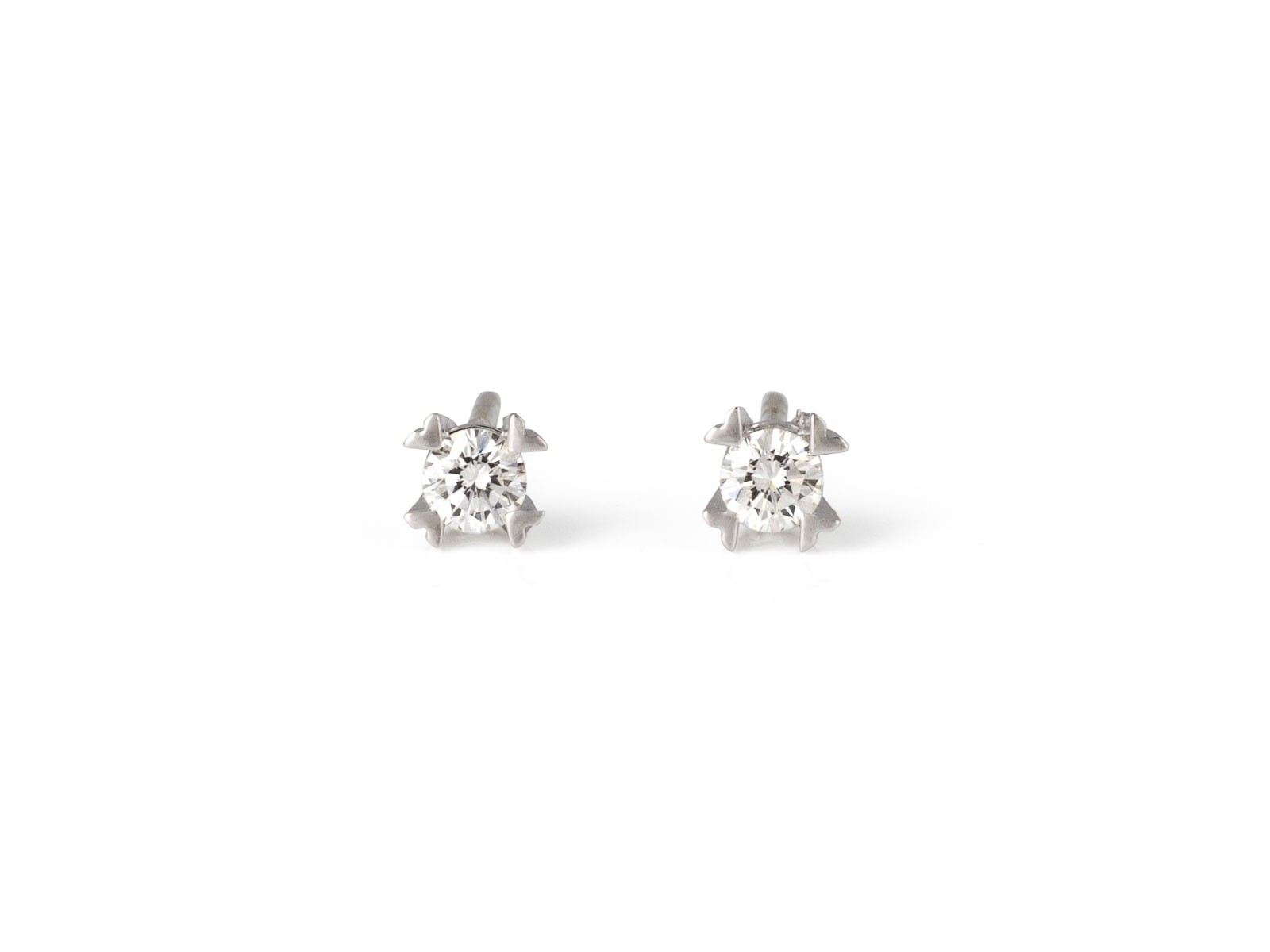 WG 750. Maße: D.: ca. 4,0 mm. Ges.-Gew.: ca. 1,1 g. Ohrstecker, besetzt mit jeweils einem Brillanten á 0.10 ct. G-H/VVS.