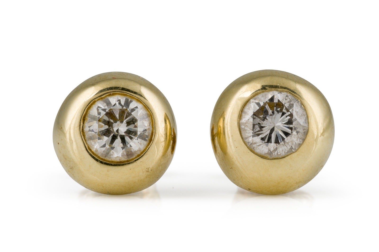 GG 750. Maße: D.: ca. 9,3 mm. Ges.-Gew.: ca. 2,4 g. Ohrstecker, besetzt mit jeweils einem Brillanten von a. 0.50 ct. J-L/P.