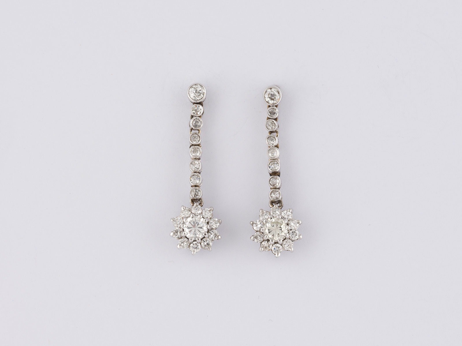Weißgold. L. 2,7 cm. Ges.-Gew. ca. 4,62. Gepr. 750. 22 Brillanten, zusammen ca. 0,64 ct. 16 facettierte Diamanten, zusammen ca. 0,26 ct.