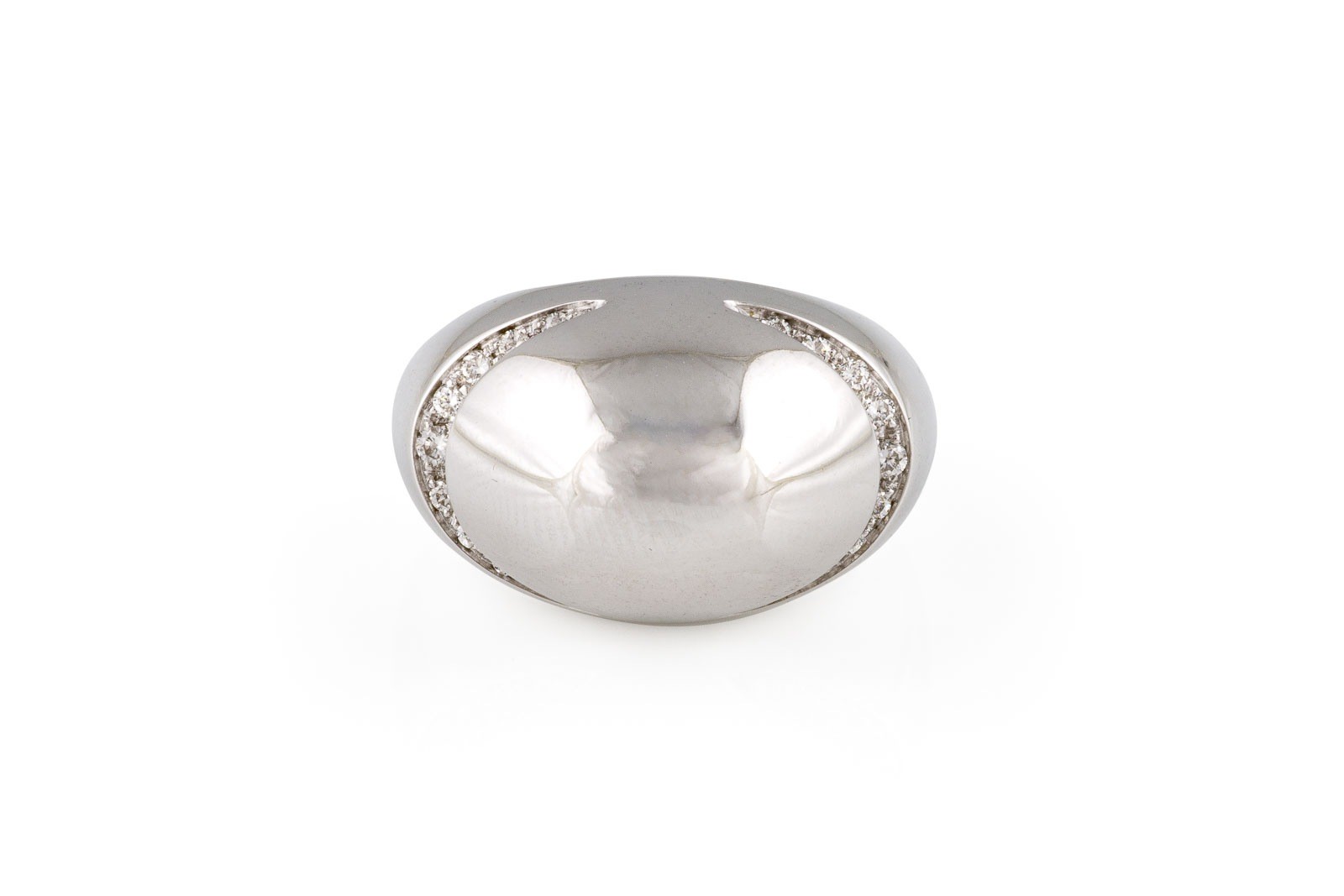 WG 750. Ringmaß: ca. 51. B.: ca. 14,1 mm. H.: ca. 11,0 mm. Ges.-Gew.: ca. 10,8 g. BVLGARI. 'Bvlgari' Ring, besetzt mit Brillanten zus. ca. 0.40 ct. G/VS.