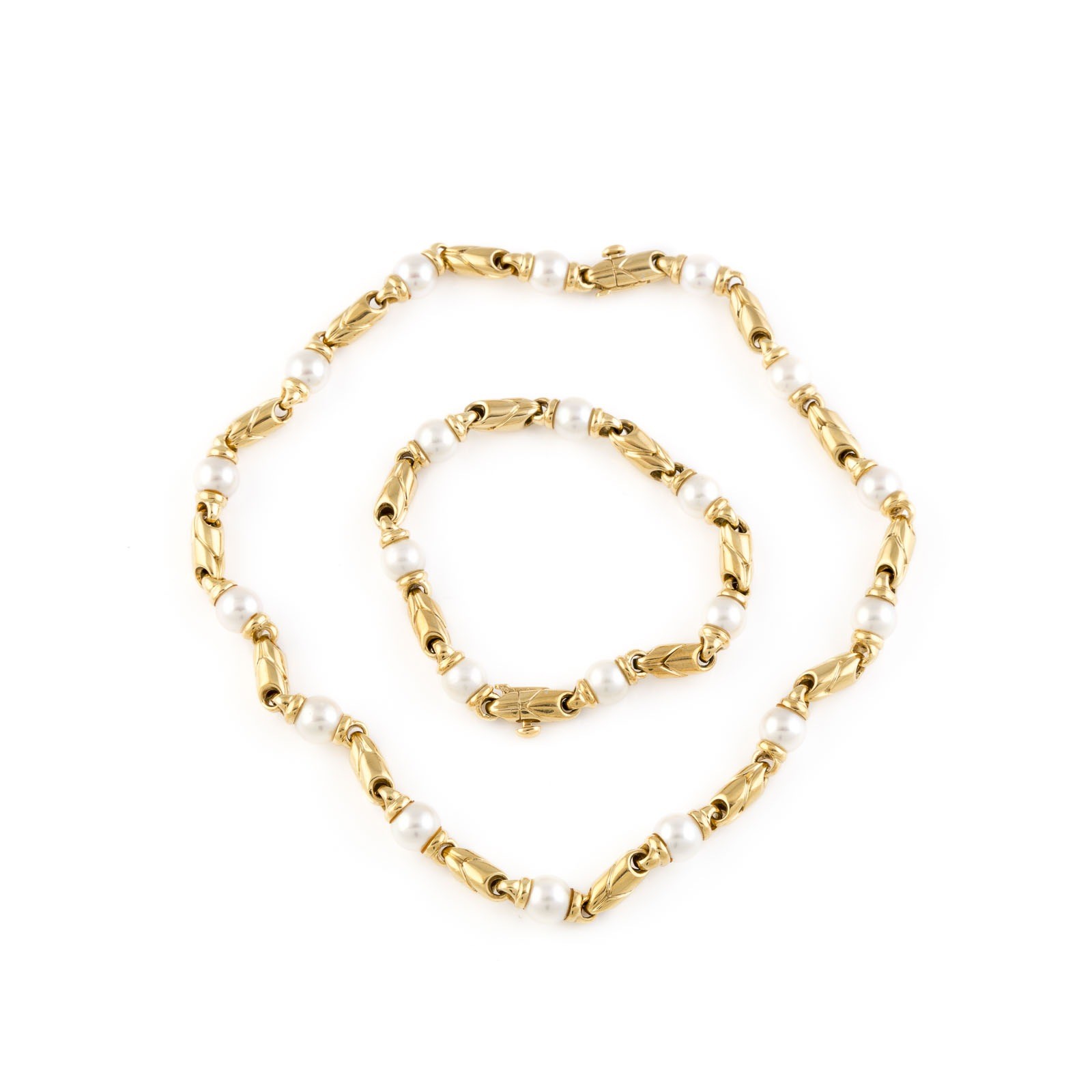 GG 750. L.(Collier): ca. 41,0 cm, L.(Armband): ca. 20,0 cm. Ges.-Gew.: ca. 105,0 g. Bulgari Set aus der 'Passo Doppio' - Kollektion:
