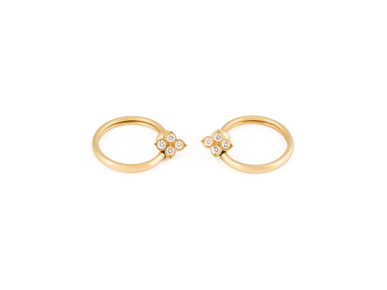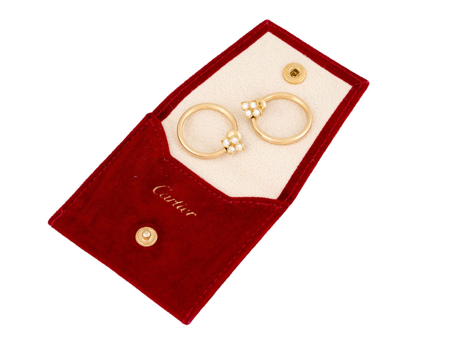 GG 750. Maße: ca. 30,0 mm x 24,6 mm. Ges.-Gew.: ca. 8,4 g. Cartier Creolen. Model: Hindu Floral, besetzt mit Brillanten zus. ca. 0.50 E/VVS.