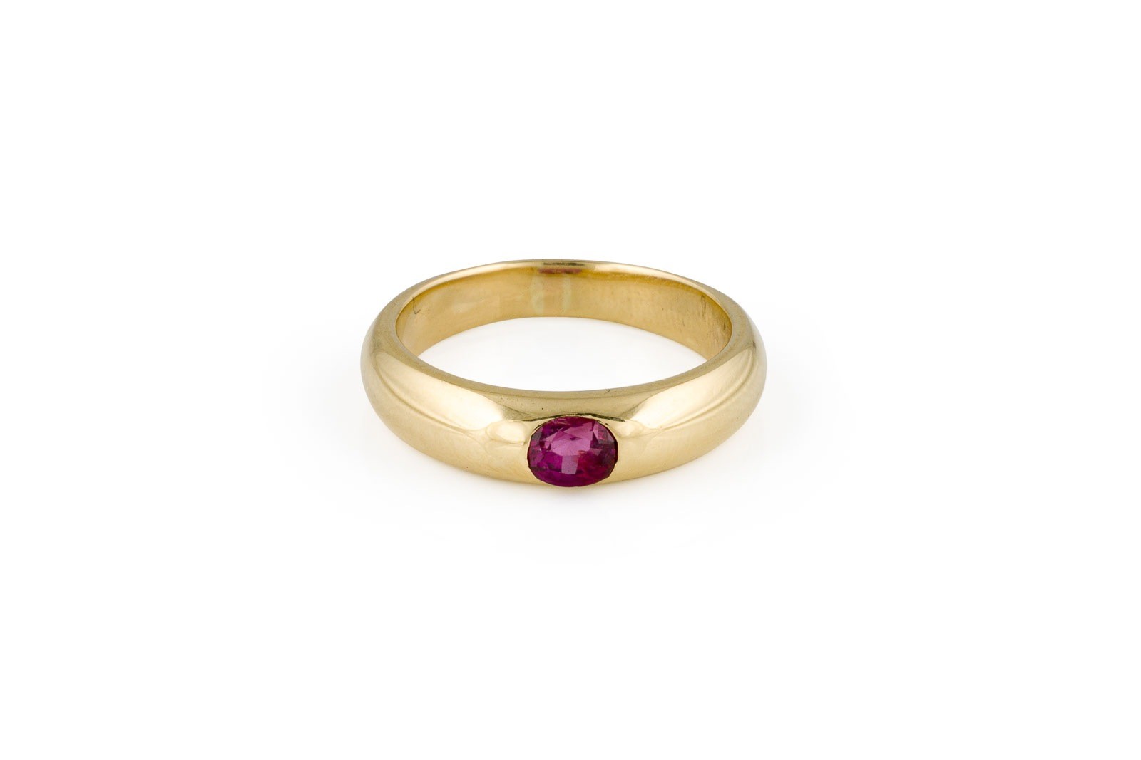 GG 750. Ringmaß: ca. 52. Ringbreite: ca. 4,8 mm. Ges.-Gew.: ca. 5,7 g. CIELO. Solitärring, besetzt mit einem Rubin von ca. 0.35 ct.
