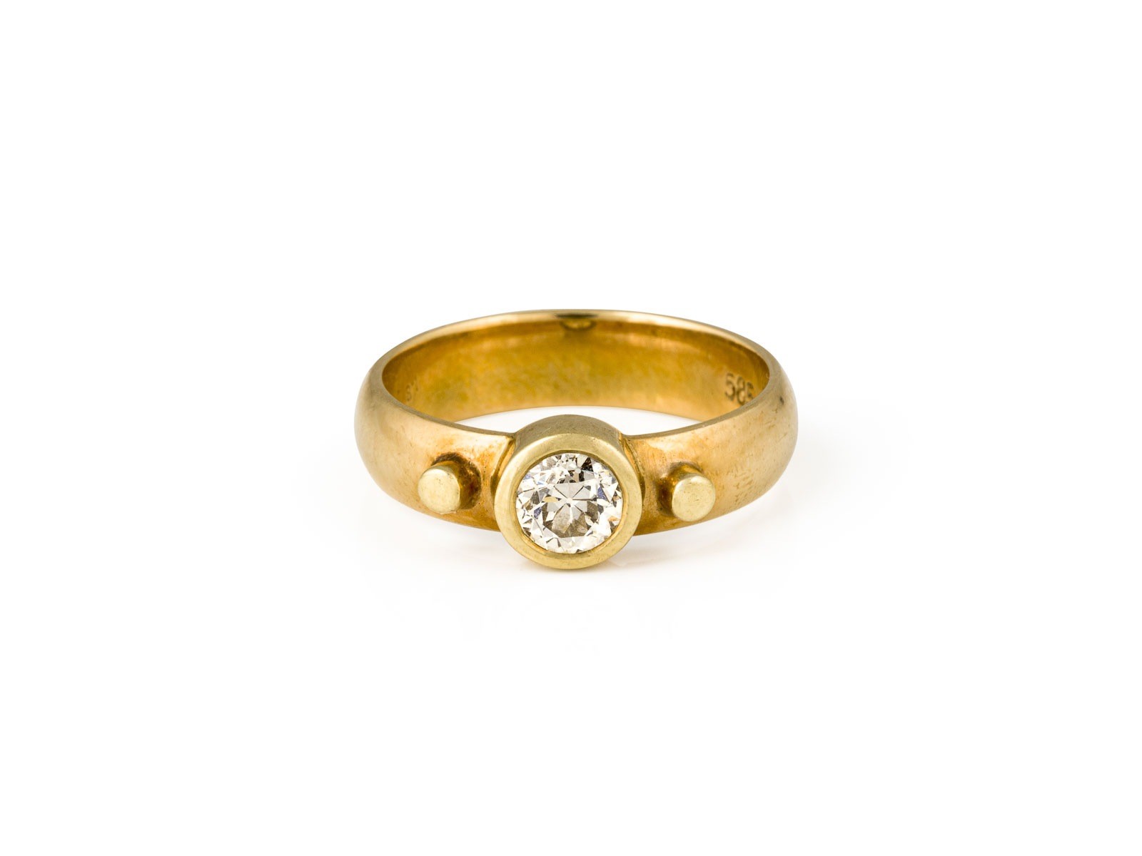 GG 585. Ringmaß: ca. 58,5. Ringbreite: ca. 7,1 mm. Ges.-Gew.: ca. 6,0 g. Solitärring, besetzt mit einem Altschliffdiamanten von ca. 0.60 ct. H/VVS.