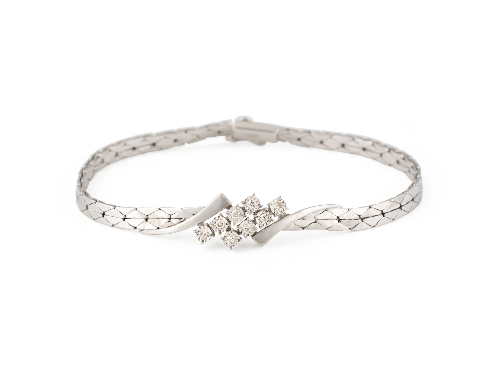 WG 585. Maße: L.: ca. 18,0 cm. B.: ca. 10,0 mm. Ges.-Gew.: ca. 12,1 g. Armband, besetzt mit 8 Diamanten im 8/8 Schliff zus. ca. 0.06 ct.
