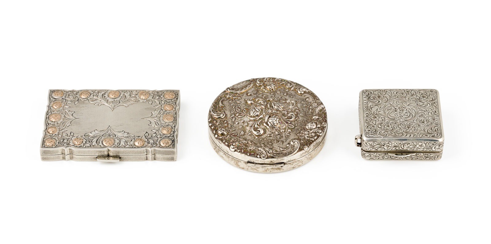 AG. Ges.-Gew.: ca. 353,6 g. Vintage Puderdosen aus Silber. Best. und ber.