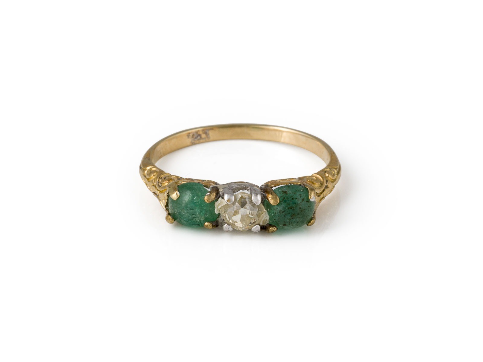 jeweils seitlich einen Smaragd Cabochon von ca. á 0.40 ct.
