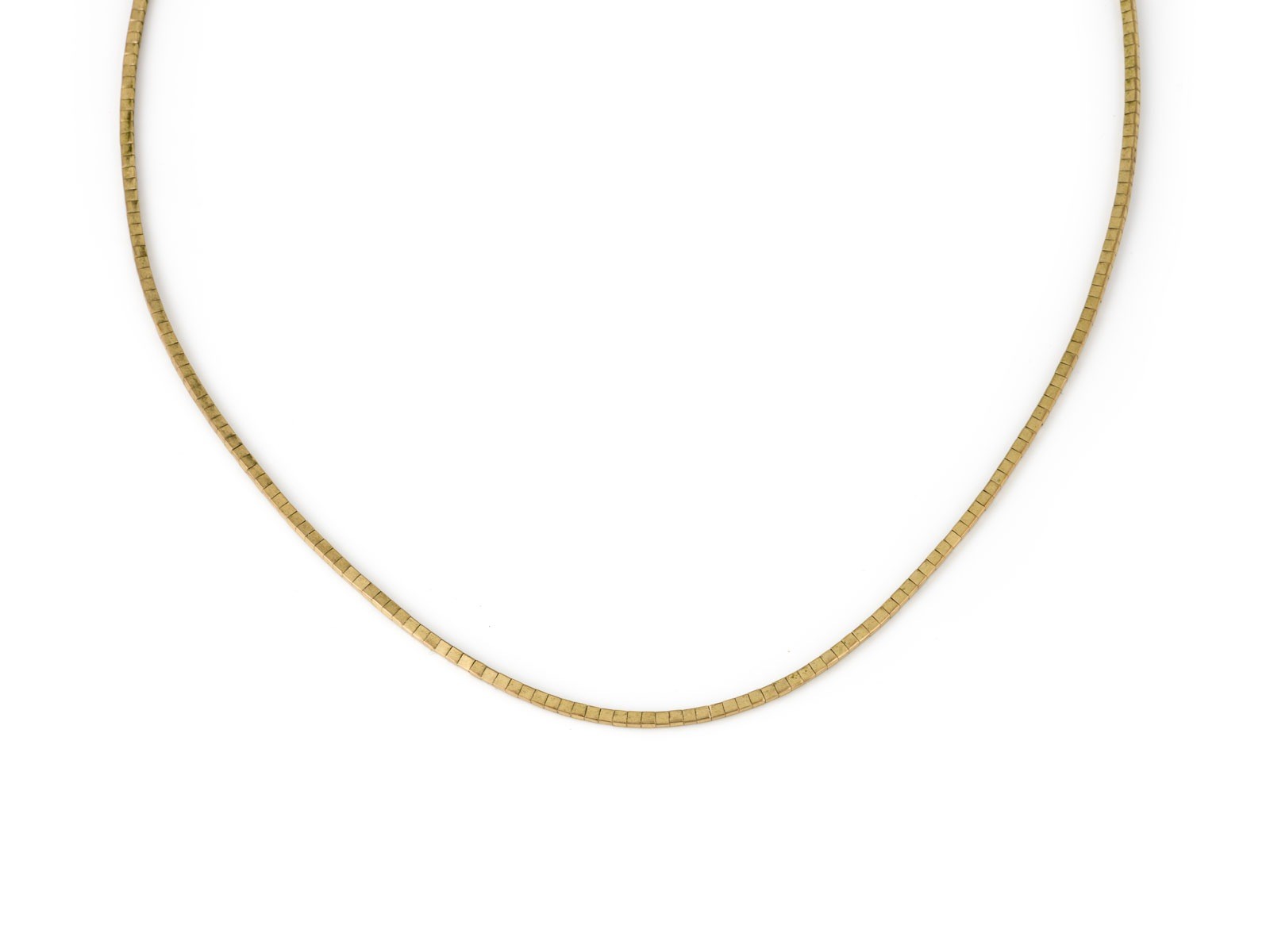 GG 333. L.: ca. 45,0 cm. Ges.-Gew.: ca. 11,2 g. Schlichtes Collier. Steckverschluss mit Sicherheitsschloss.