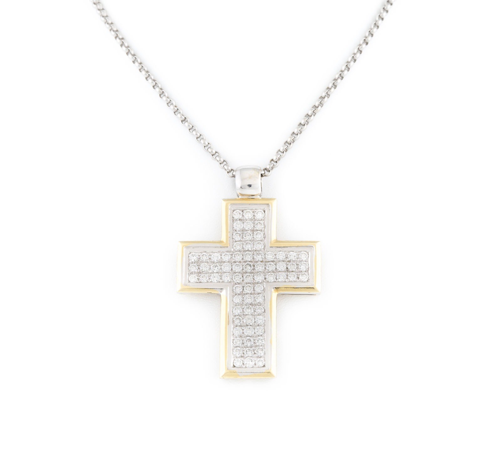 GG/WG 750. Ges.-Gew.: ca. 35,0 g. Großer Kreuz-Anhänger an Kette.