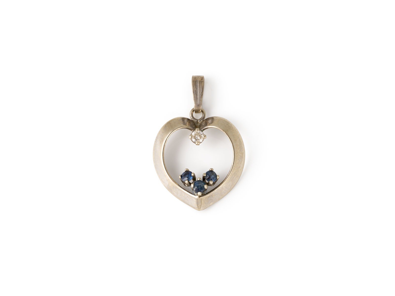 WG 585. Maße: L.(inkl. Öse): ca. 26,6 mm. B.: ca. 17,8 mm. Ges.-Gew.: ca. 1,6 g. Anhänger in Herzform, besetzt mit einem Brillanten von ca. 0.05 ct. und 3 rund
