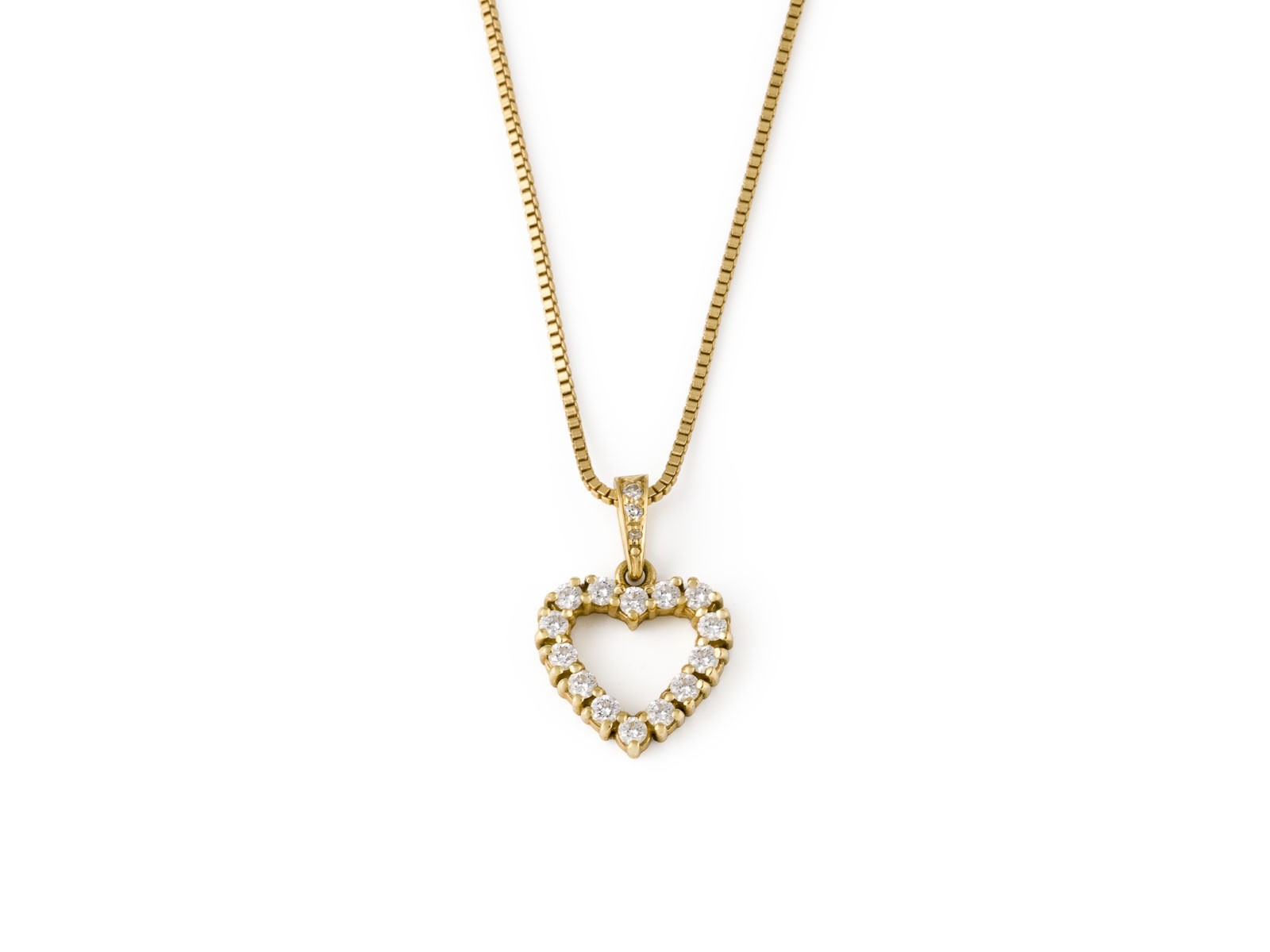 GG 750. L(Collier): ca. 39,0 cm. Ges.-Gew.: ca. 4,6 g. Herzanhänger, besetzt mit Brillanten zus. ca. 0.30 ct. Maße(Anhänger): ca. 17,0 mm x 12,3