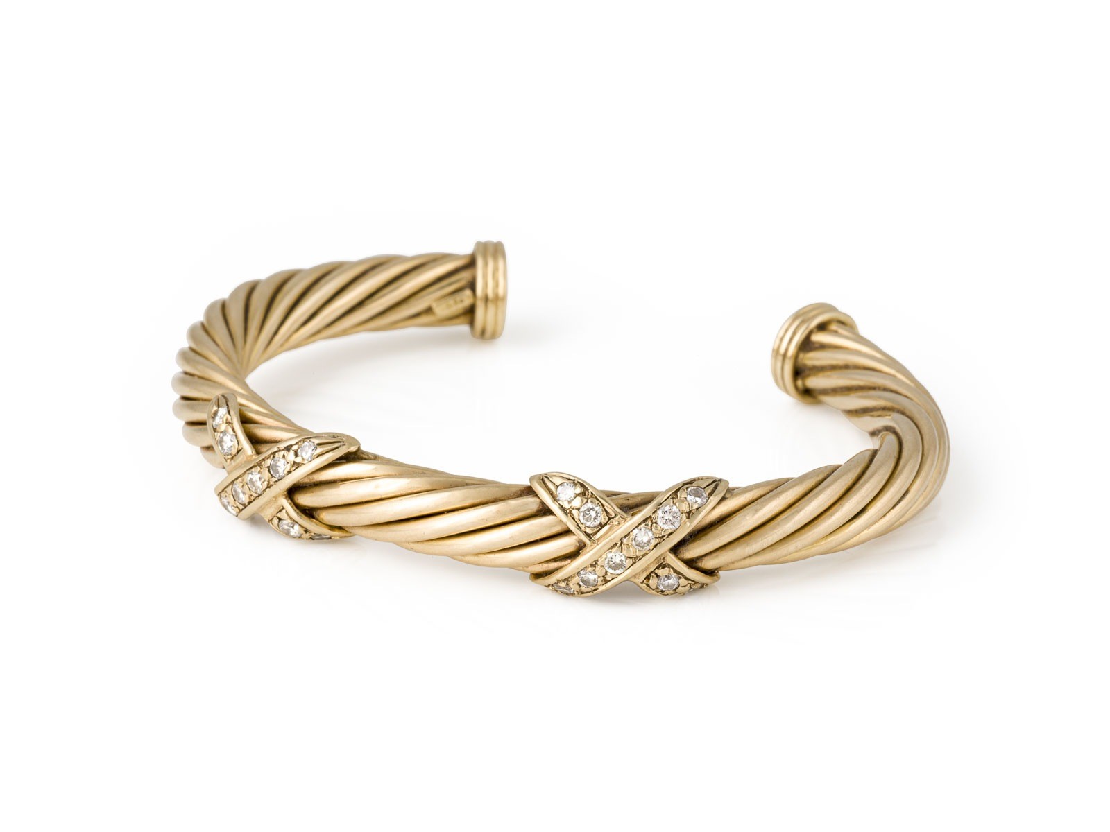 GG 585. Maße: D.(innen): ca. 60,0 mm. Stärke: ca. 7,6 mm. Ges.-Gew.: ca. 19,8 g. Kabel Armspange, besetzt mit Brillanten zus. ca. 0.30 ct. min best.