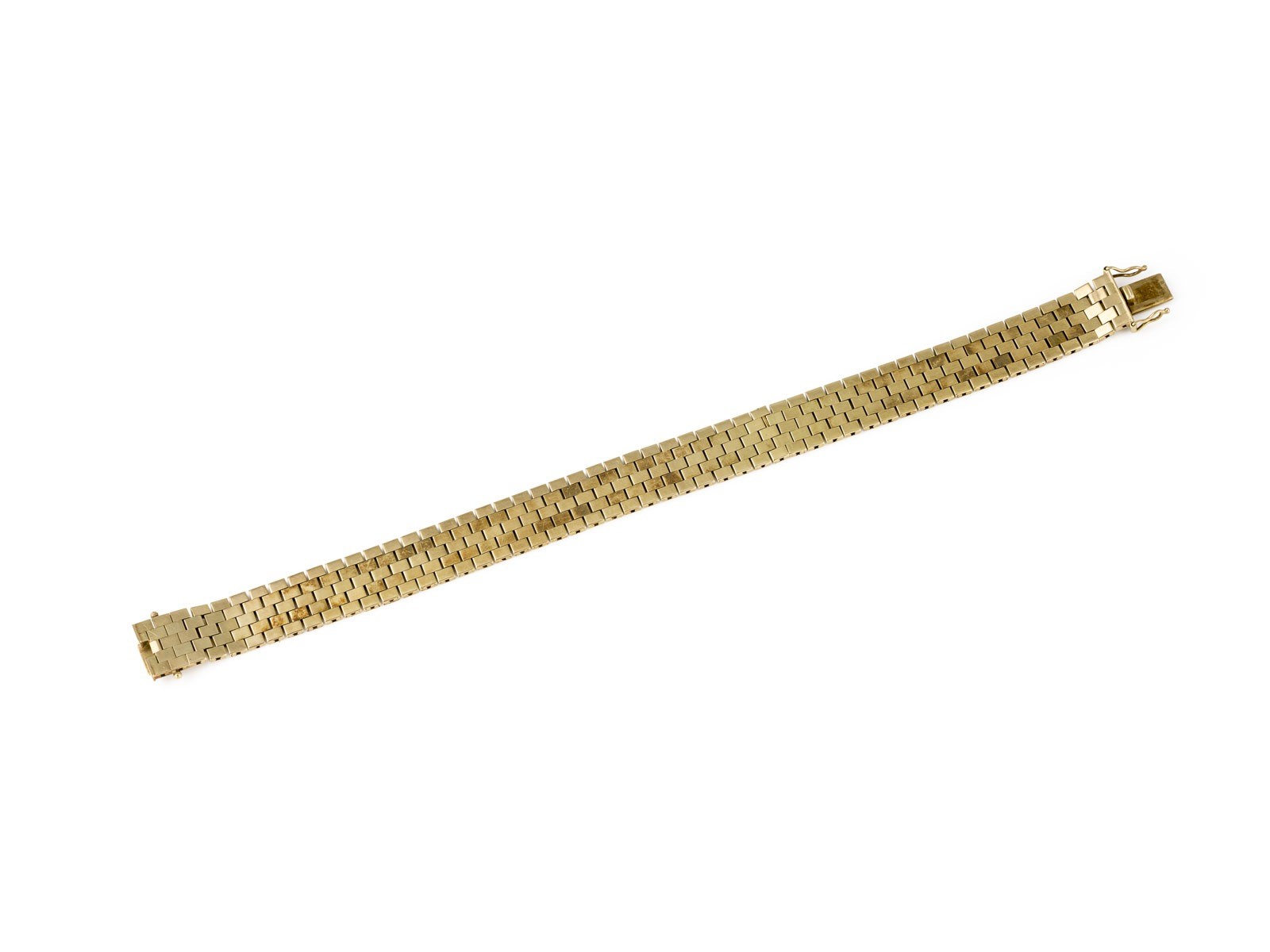 GG 585. Maße: L.: ca. 20,0 cm. B.: ca. 12,1 mm. Ges.-Gew.: ca. 36,8 g. Längeres Armband. Steckverschluss mit doppeltem Sicherheitsschloss.