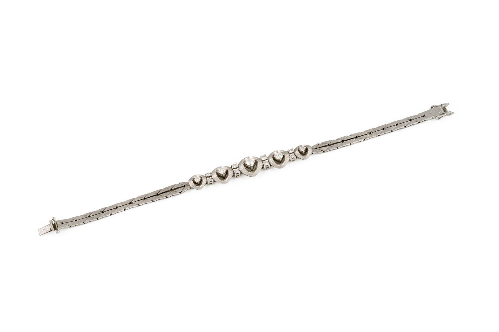 WG 585. L.: ca. 17,5 cm. B.: ca. 9,8 mm. Ges.-Gew.: ca. 15,3 g. Mattiertes Armband, besetzt mit Brillanten zus. ca. 0.80 ct.. G-H/VS-SI. Kastenschloss mit