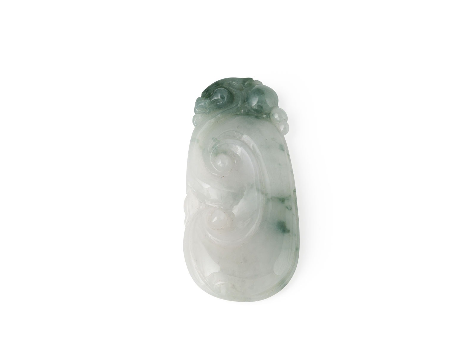 OVALER GESCHNITZTER JADEIT ANHÄNGER Maße: ca. 53,3 mm x 25,3 mm. Ges.-Gew.: ca. 13,2 g. Geschnitzter Jadeit Anhänger.