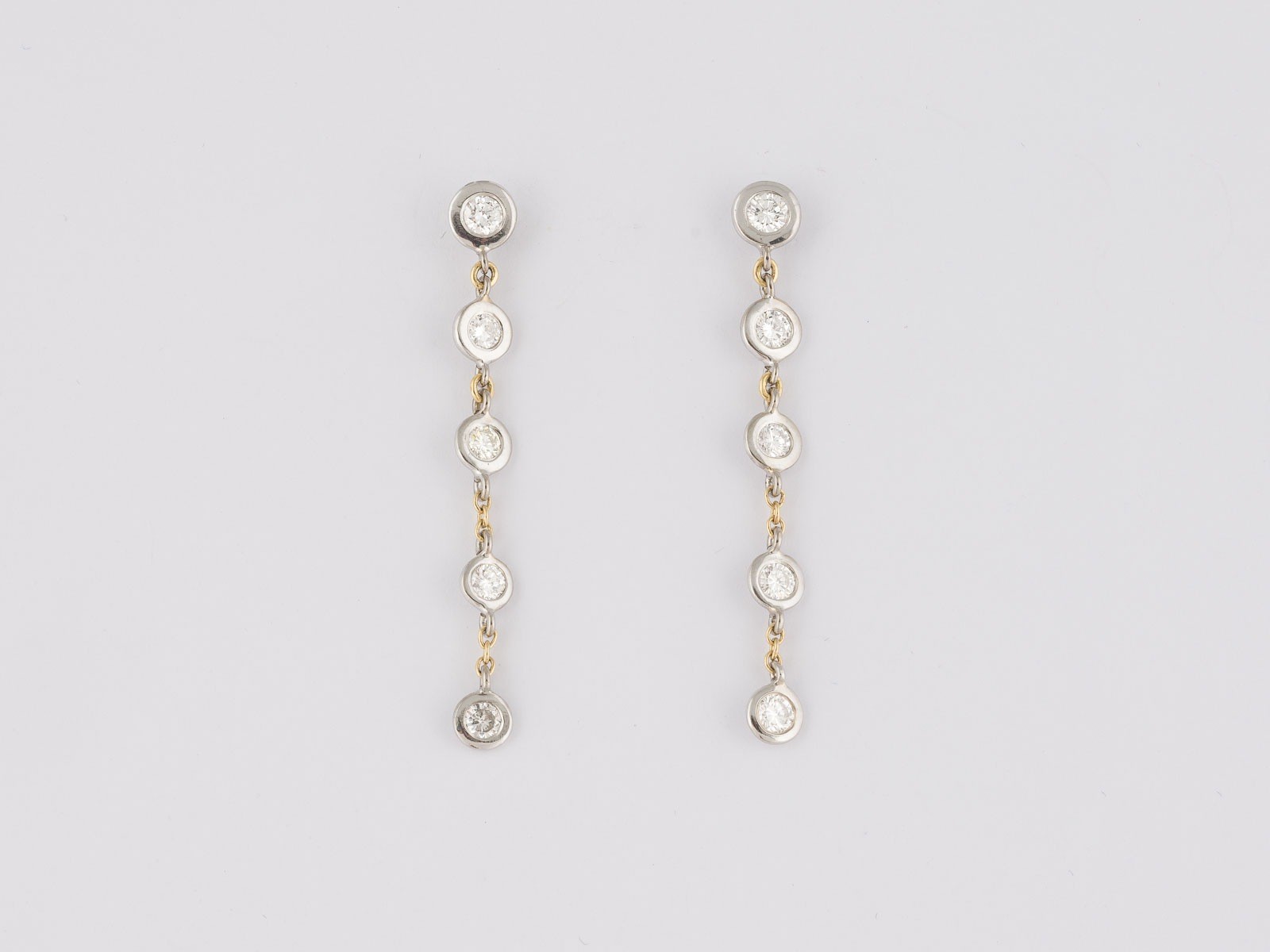 Gelbgold, Weißgold. L. 4,5 cm, Ges.-Gew. ca. 4,2 g. Gest. 750. Zusammen 10 Brillanten, zusammen ca. 1,40 ct., etwa G-H VS-SI. Minimale Tragespuren.