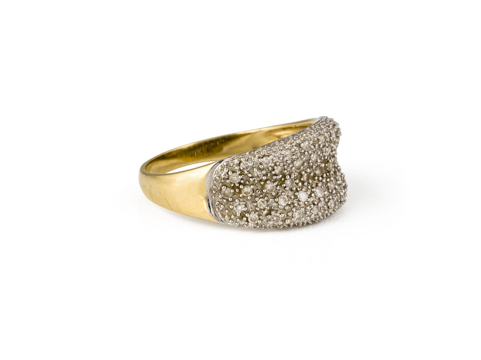 WG/GG 585. Ringmaß: ca. 66. Ringbreite: ca. 11,4 mm. Ges.-Gew.: ca. 5,3 g. Ring, besetzt mit Diamanten in Pavéefassung zus. ca. 0.50 ct.