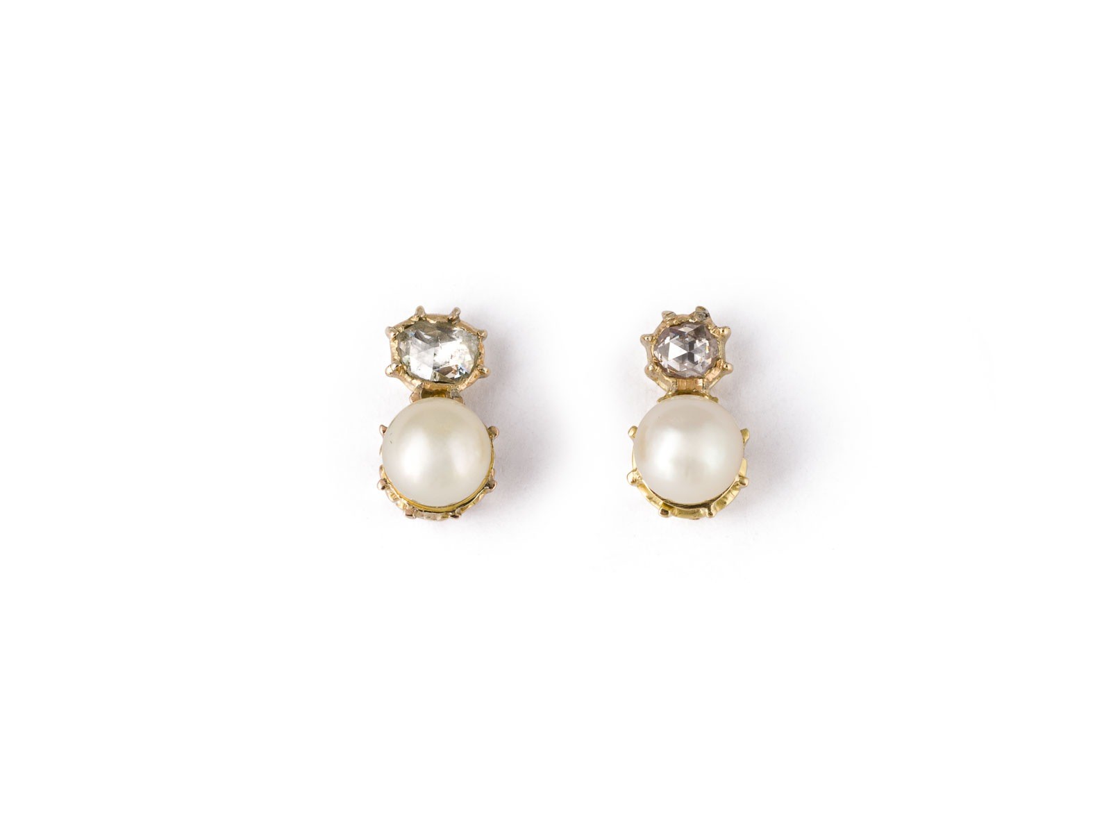 GG 585. Maße: ca. 12,5 mm x 6,9 mm. Ges.-Gew.: ca. 3,2 g. Ohrstecker, besetzt mit Diamanten im Rosenschliff zus. ca. 0.30 ct. und jeweils einer