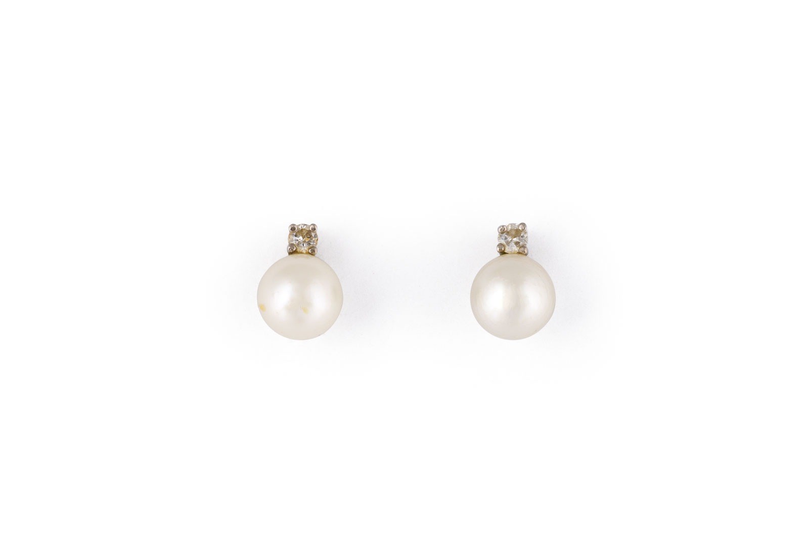 WG 585. Ges.-Gew.: ca. 3,1 g. Perlen Ohrstecker. D.(Perle): ca. 7,7 mm. Diamanten zus. ca. 0.15 ct.