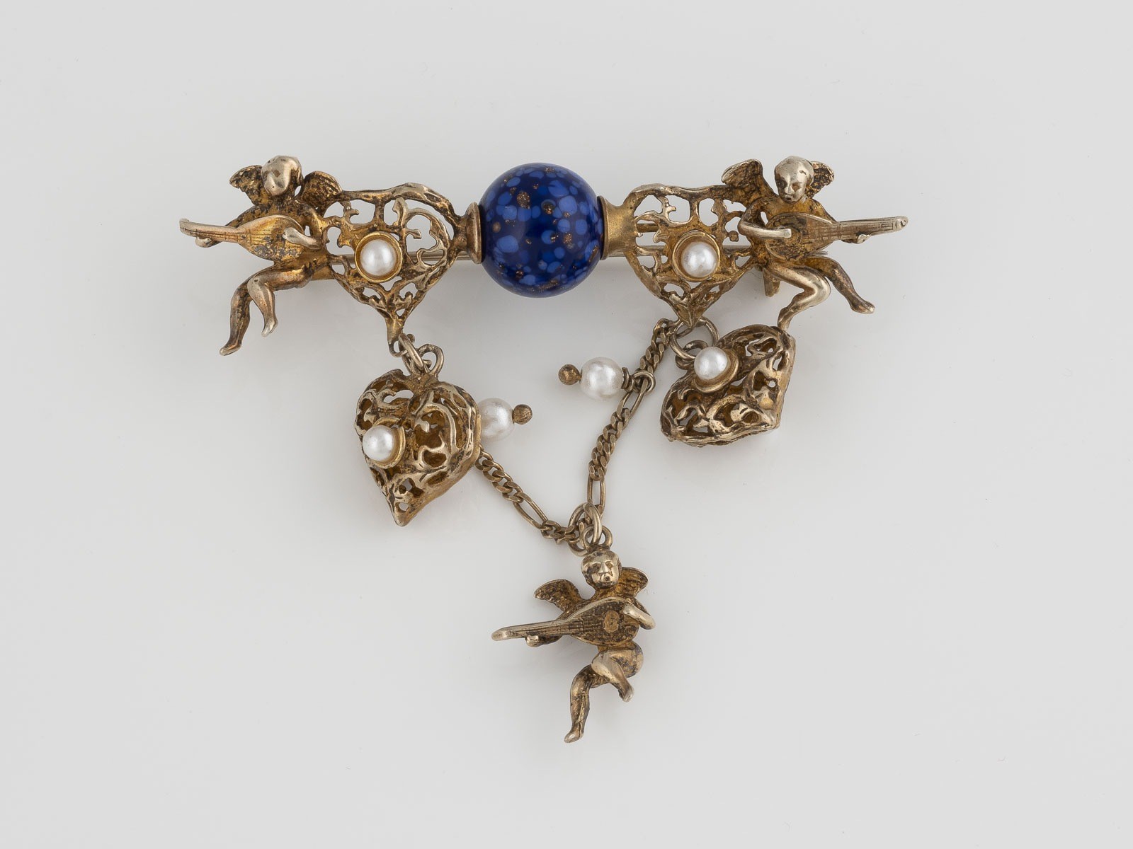 Silber, part. vergoldet. 6,9 x 5,5 cm, Ges.-Gew. ca. 16,5 g. Gest. 925, italenische Punzierung für Provinz Arezzo. Murano-Glaskugel, kleine Schmuckperlen. Part. leicht besch.