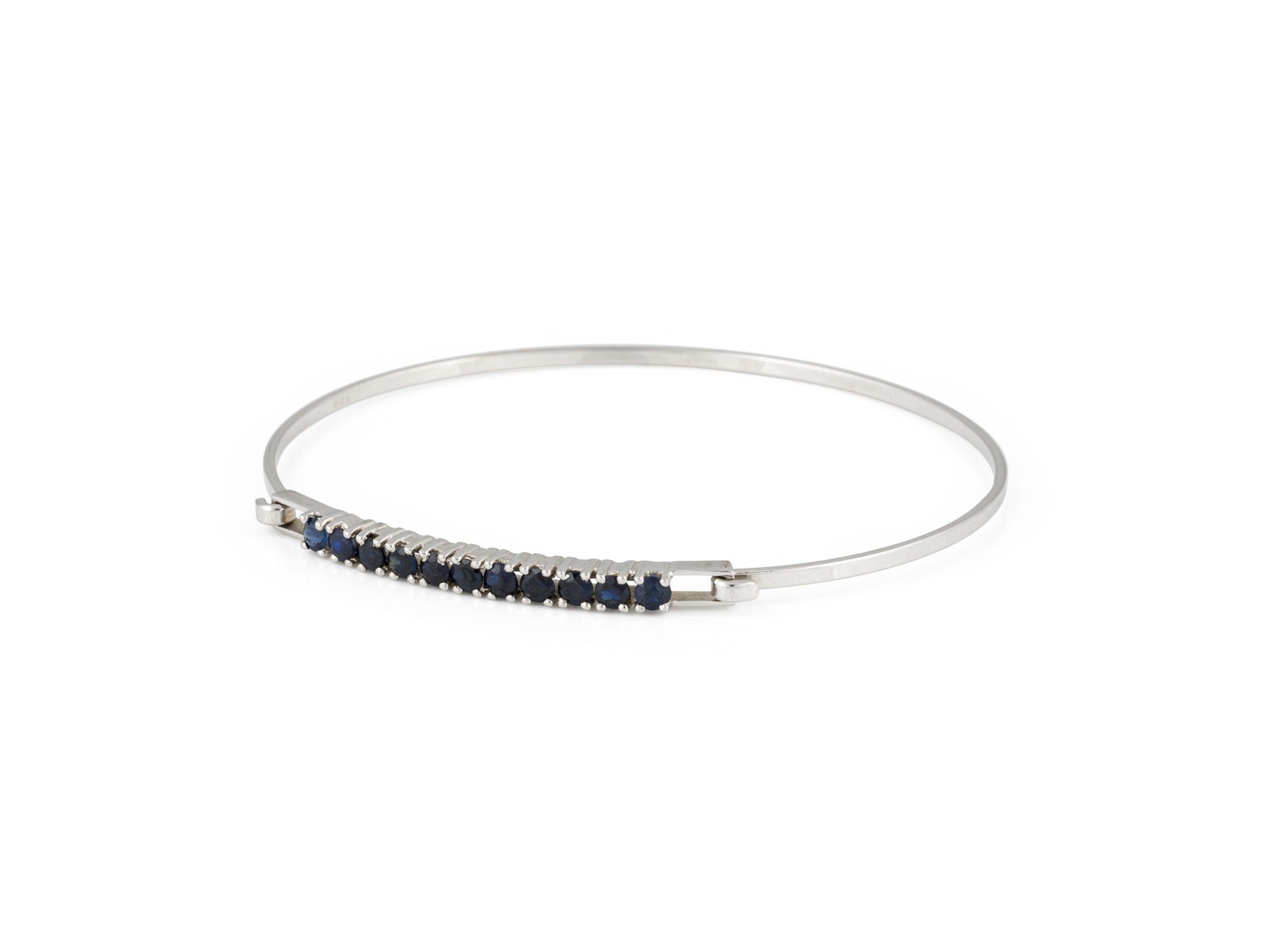 WG 585. D.(innen): ca. 57,0 mm. Ges.-Gew.: ca. 4,9 g. Armreif, besetzt mit Saphiren zus. ca. 0.70 ct.