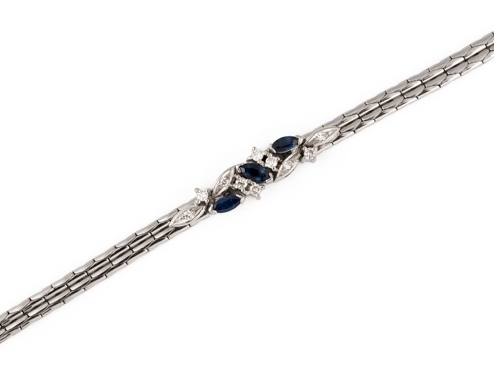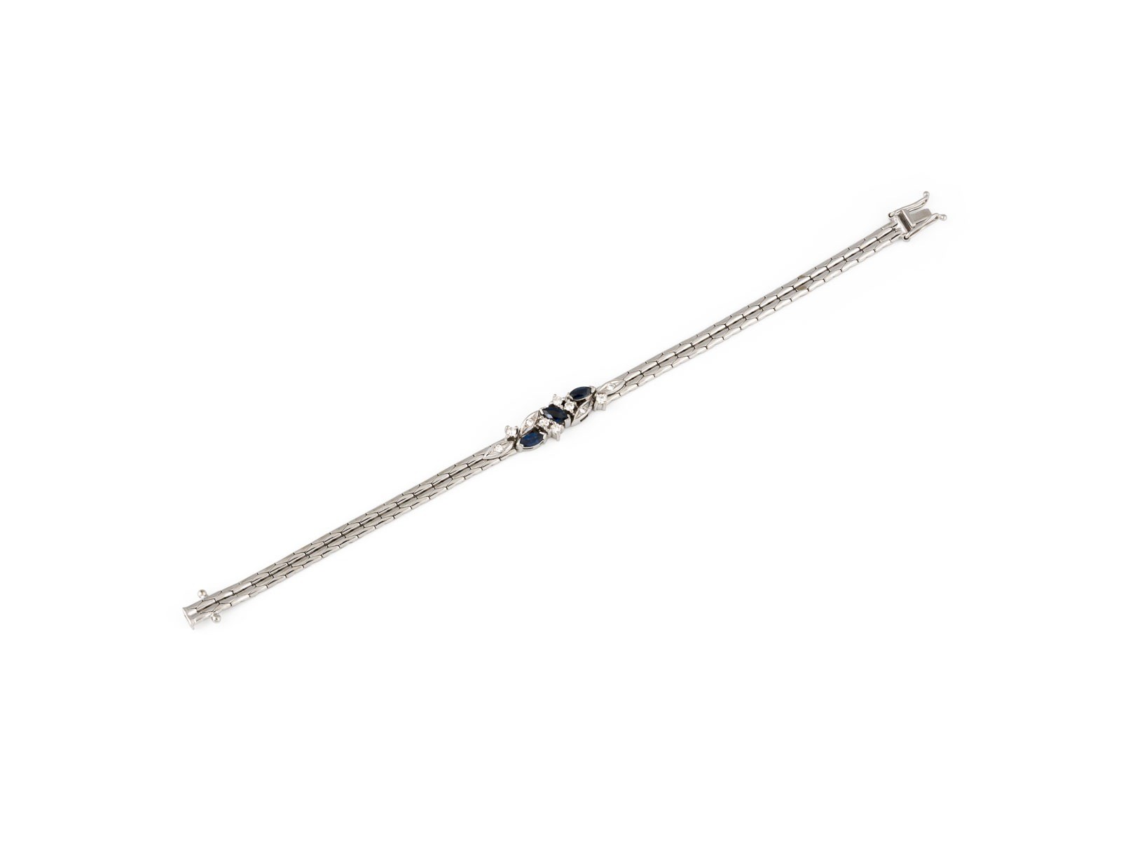 WG 585. Maße: L.: ca. 18,0 cm. B.: ca. 8,0 mm. Ges.-Gew.: ca. 14,4 g. Armband, besetzt mit 3 Saphiren zus. ca. 0.55 ct., sowie 10 Brillanten zus. ca. 0.30 ct.