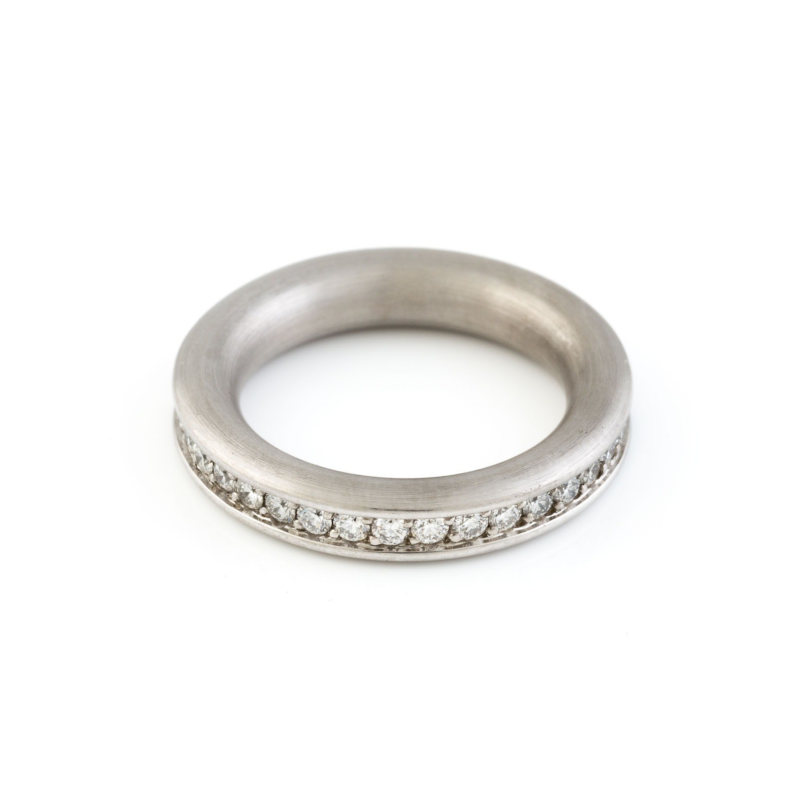 WG 750. Ringmaß: ca. 54. Ges.-Gew.: ca. 11,1 g. Goldschmiedearbeit. Memoire Ring, seitlich mattiert und abgerundet gearbeitet. Insgesamt