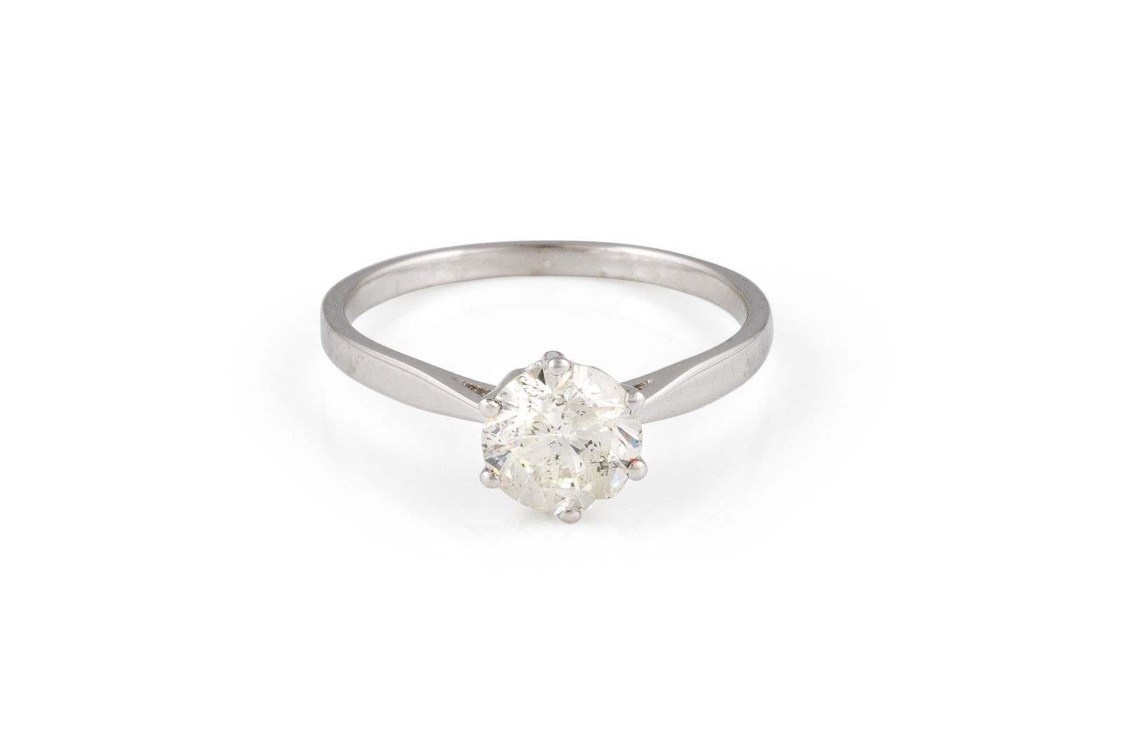 WG 585. Ringmaß: ca. 53. D.(Ringkopf): ca. 7,7 mm. Ges.-Gew.: ca. 1,8 g. Solitärring, besetzt mit einem Brillanten von ca. 1.08 ct. K/P.