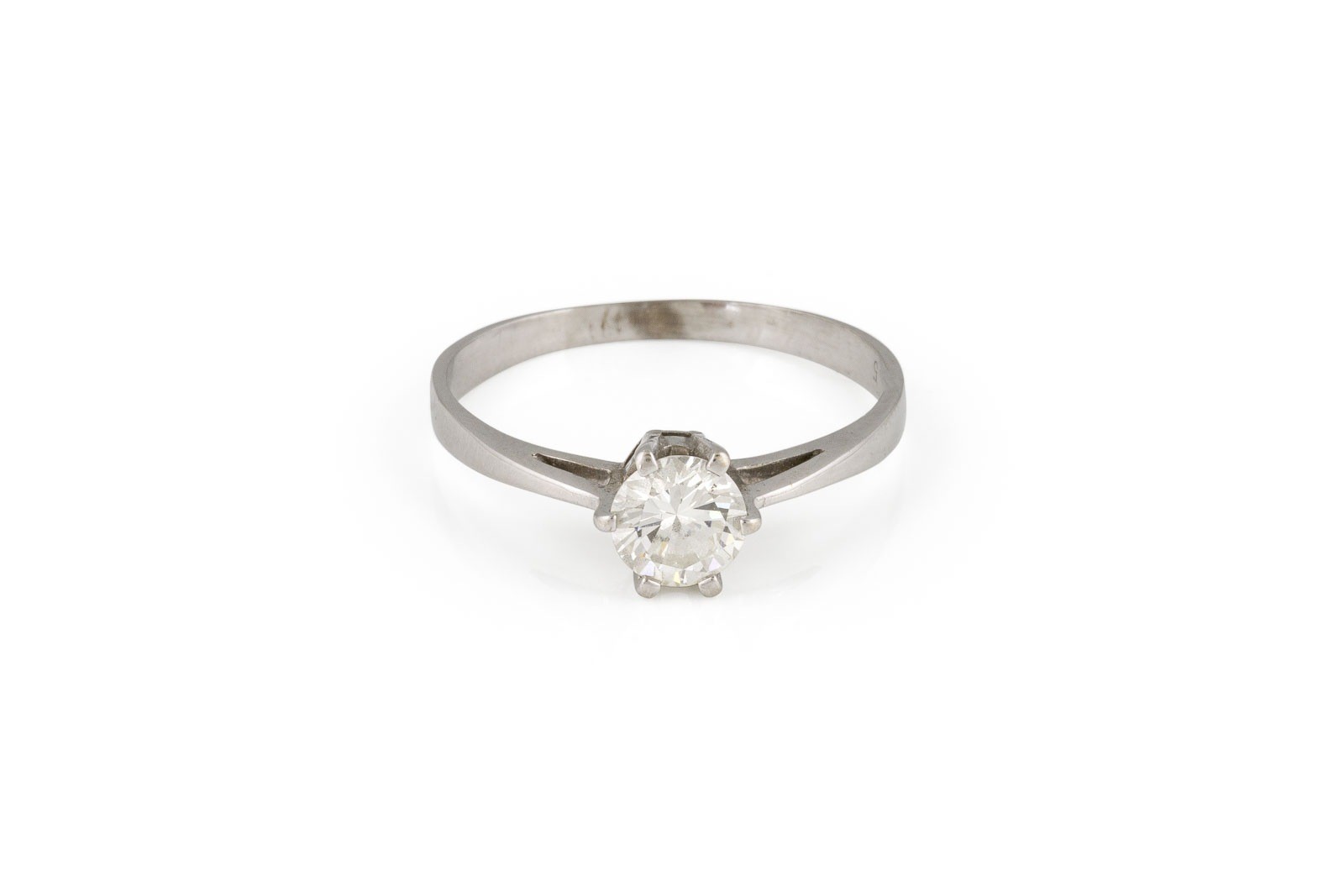 WG 585. Ringmaß: ca. 59. Ges.-Gew.: ca. 1,9 g. Solitärring, besetzt mit einem Brillanten von ca. 0.65 ct. H/SI.