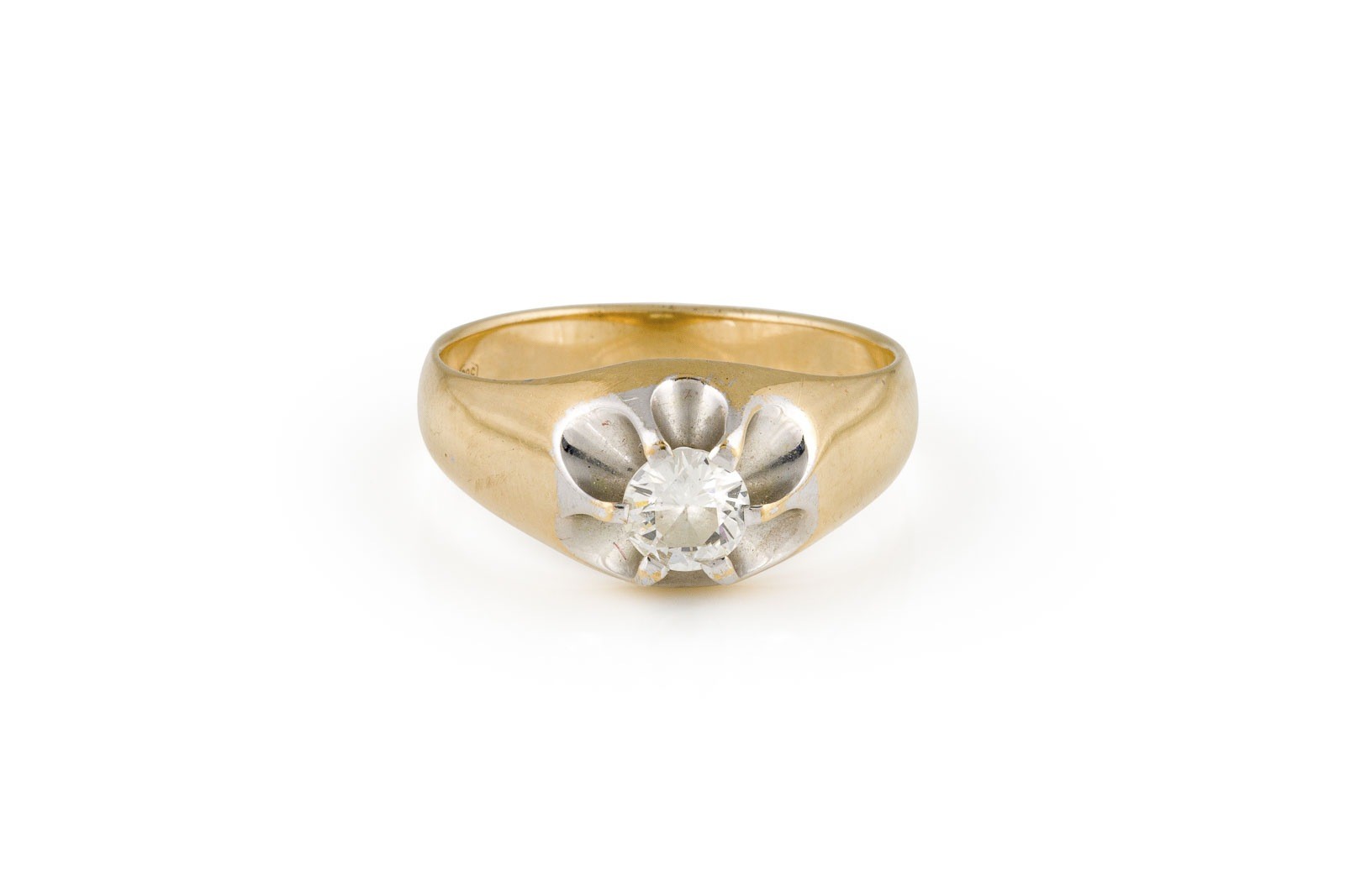 WG 585. Ringmaß: ca. 62. Ringbreite: ca. 10,3 mm. Ges.-Gew.: ca. 5,7 g. Solitärring, besetzt mit einem Brillanten von ca. 0.58 ct. H/SI.