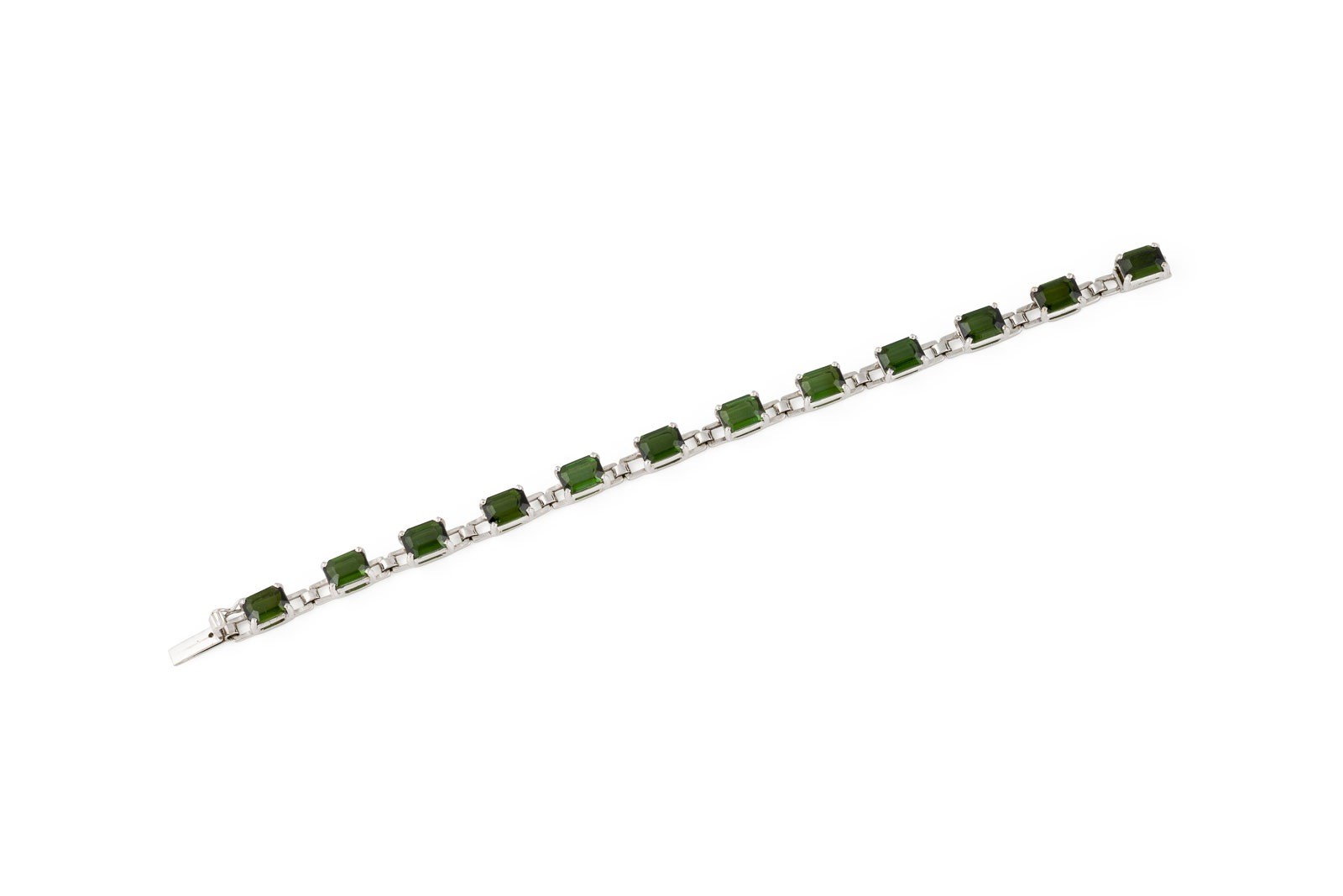 WG 750 (getestet). Maße: L.: ca. 18,5 cm. B.: ca. 6,0 mm. Ges.-Gew.: ca. 18,2 g. Armband, besetzt mit Turmalinen zus. ca. 18.00 ct. Kastenschloss mit Sicherheitsacht.
