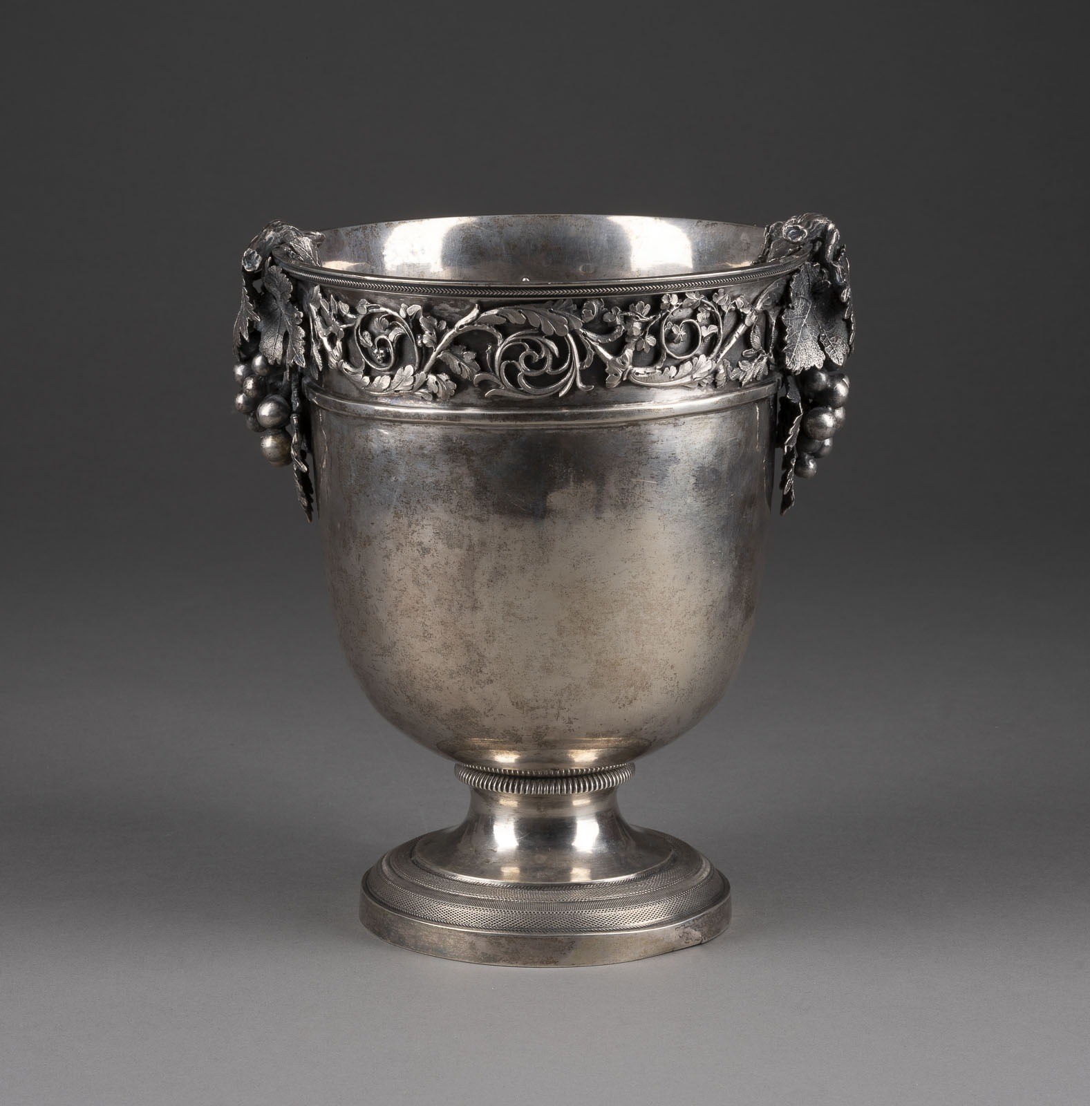 MASSIVER WIENER SEKTKÜHLER MIT APPLIZIERTEM WEINREBENDEKOR