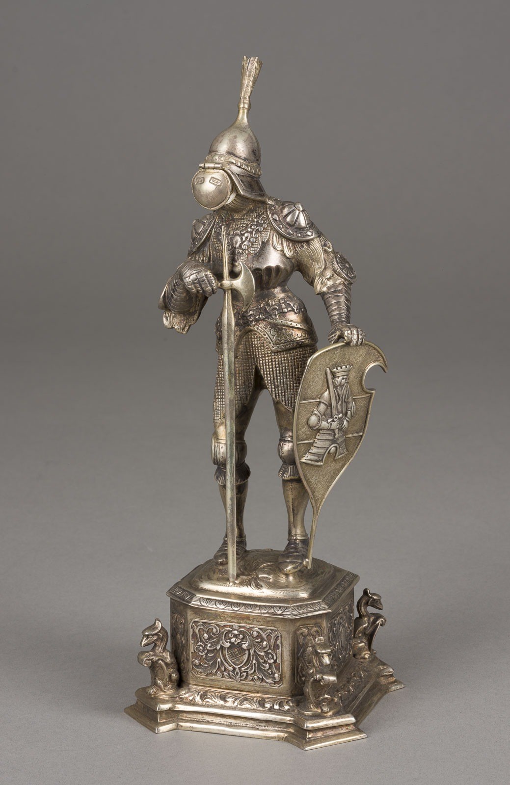 SILBERFIGUR EINES STEHENDEN RITTERS