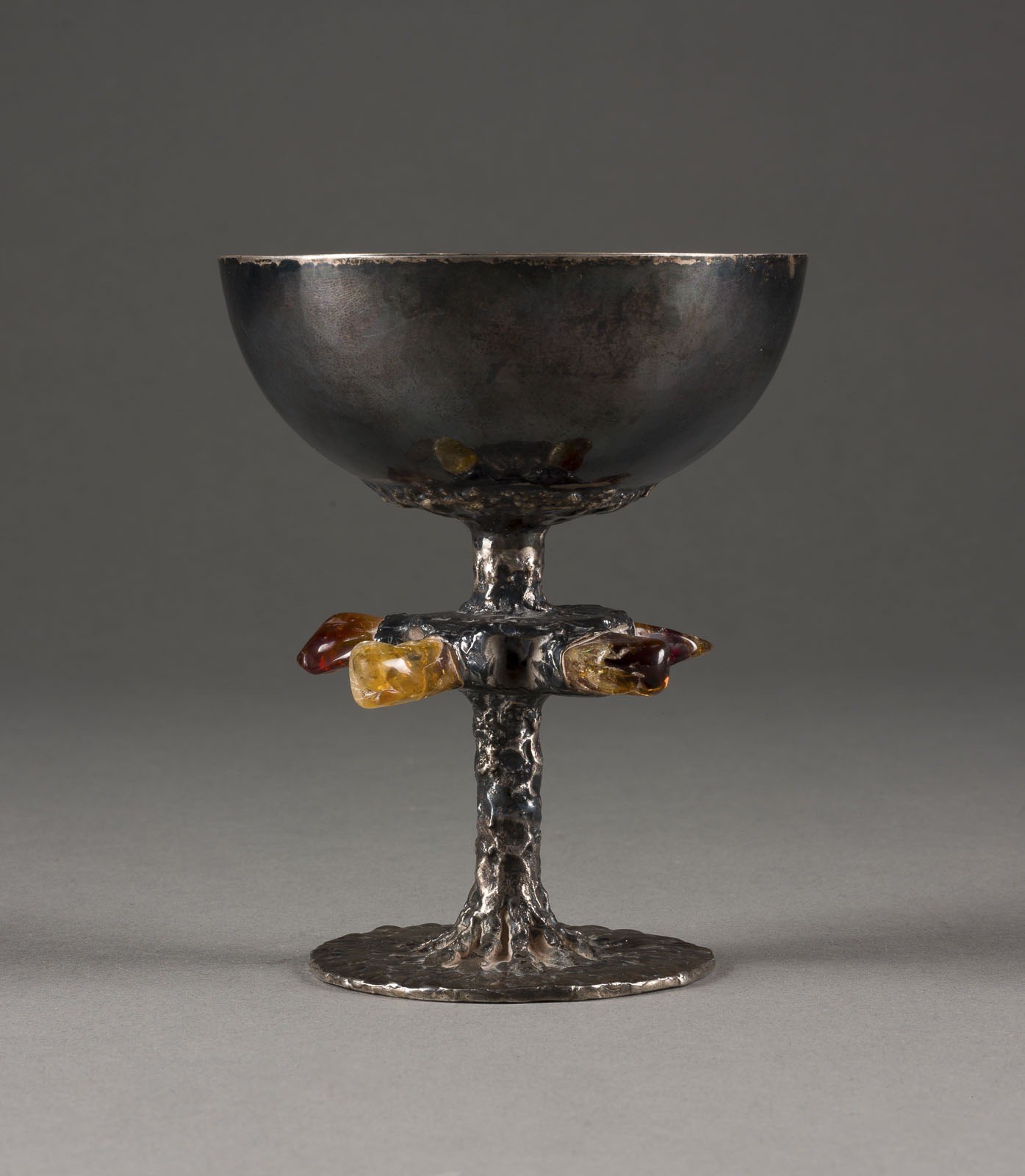 SILBERKELCH MIT FÜNF BERNSTEINEN