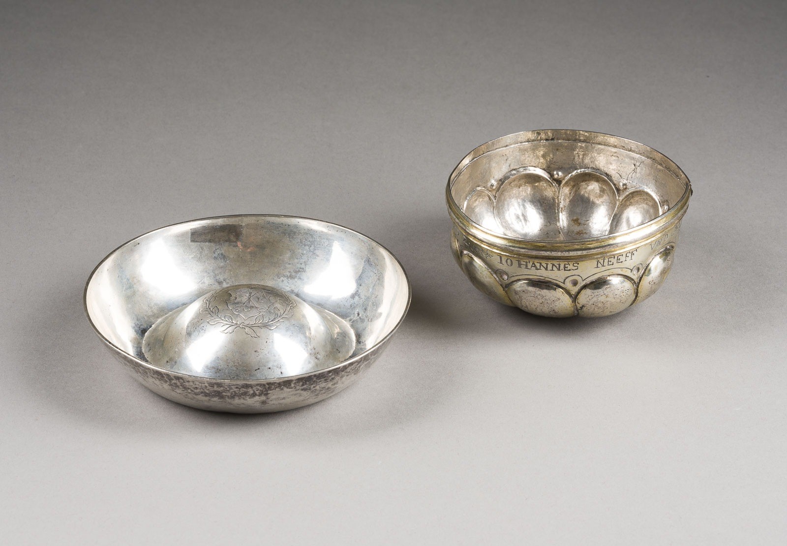 Silber. Ges.-Gew. 170 g. Weinprobierschale mit Wappen (Familienbesitz Hauth Wehlen). Inschrift: 'Iohannes Neeff und