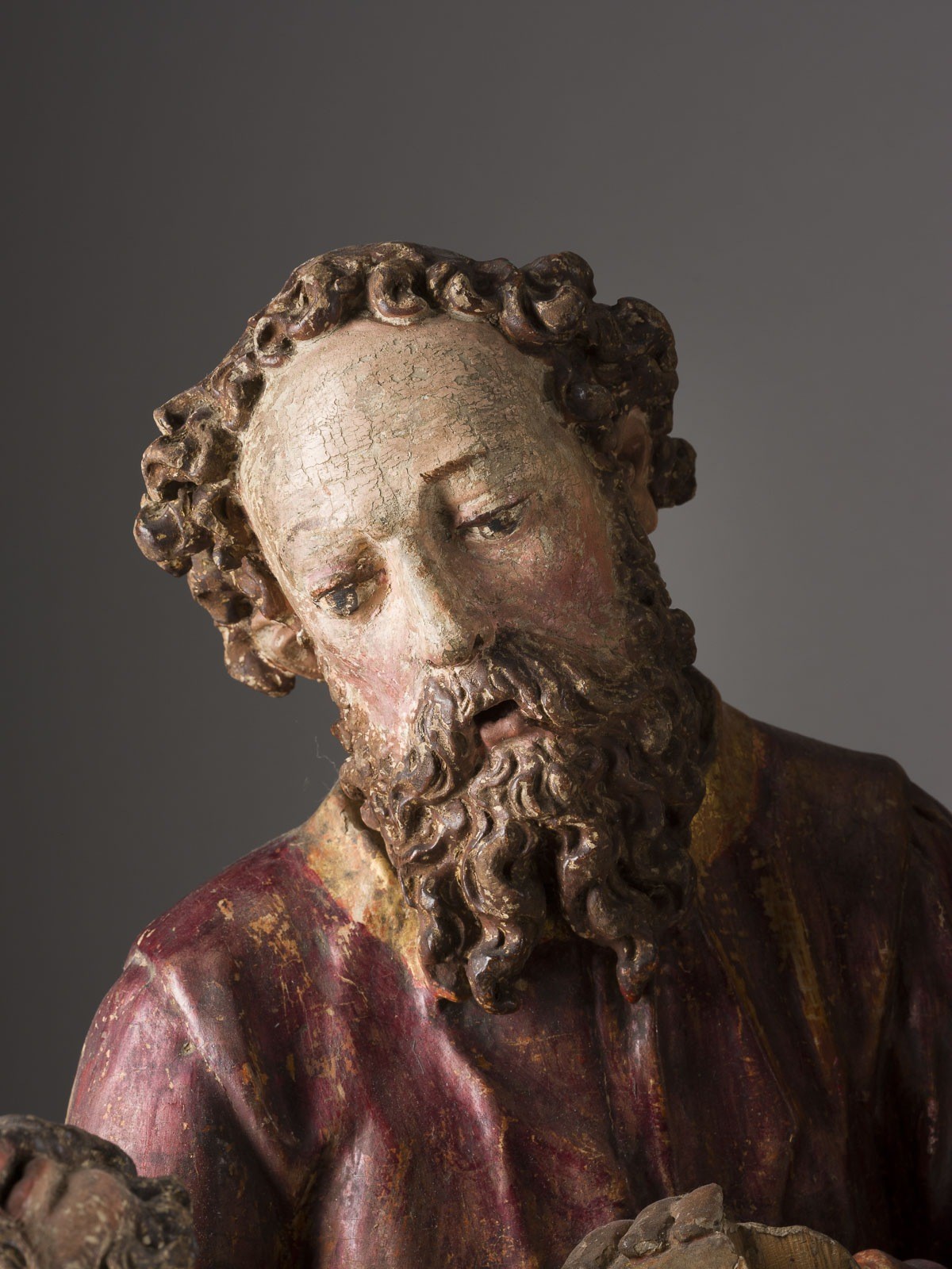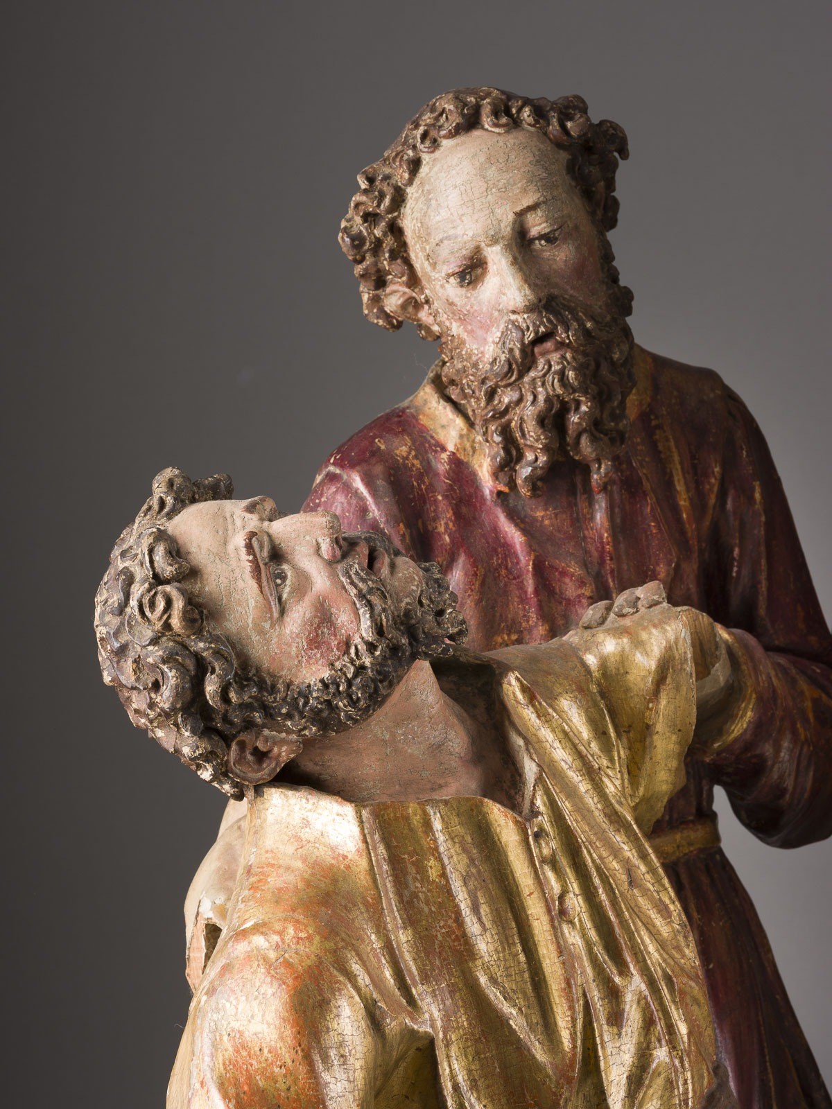 Faltenwurf sowie die markante Physiognomie der Figuren entsprechen den typischen