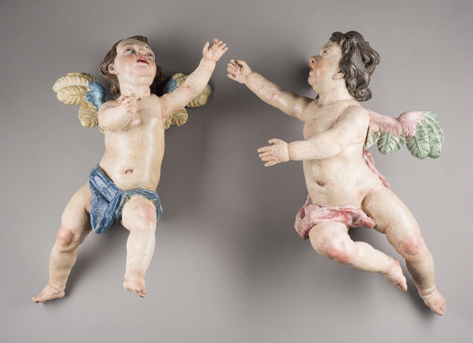 PAAR SCHWEBENDE GEFLÜGELTE PUTTEN