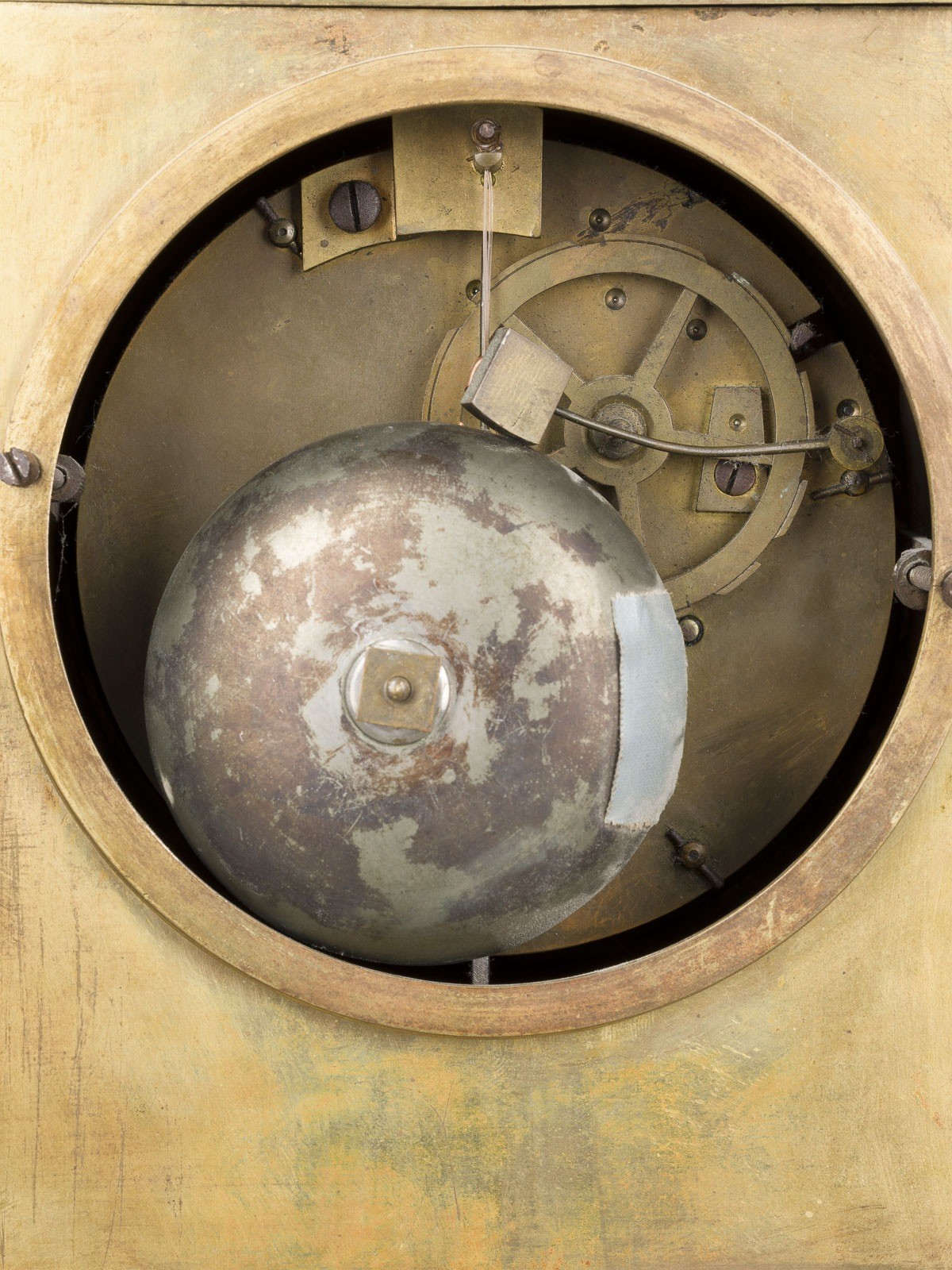 emailliertem weißem Ziffernring mit römischen Zahlen und Breguetzeigern. Part. best., ber., besch. und rest.; Funktion ungeprüft; mit Pendel und 2 Schlüsseln.