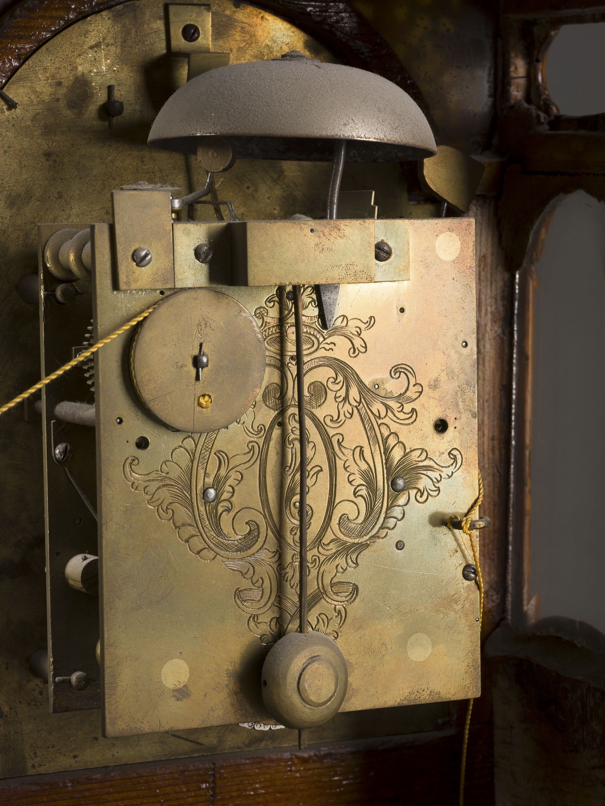 Glocke. Ziffernring aus Messing, graviert und verziert, mit römischen Stunden- und